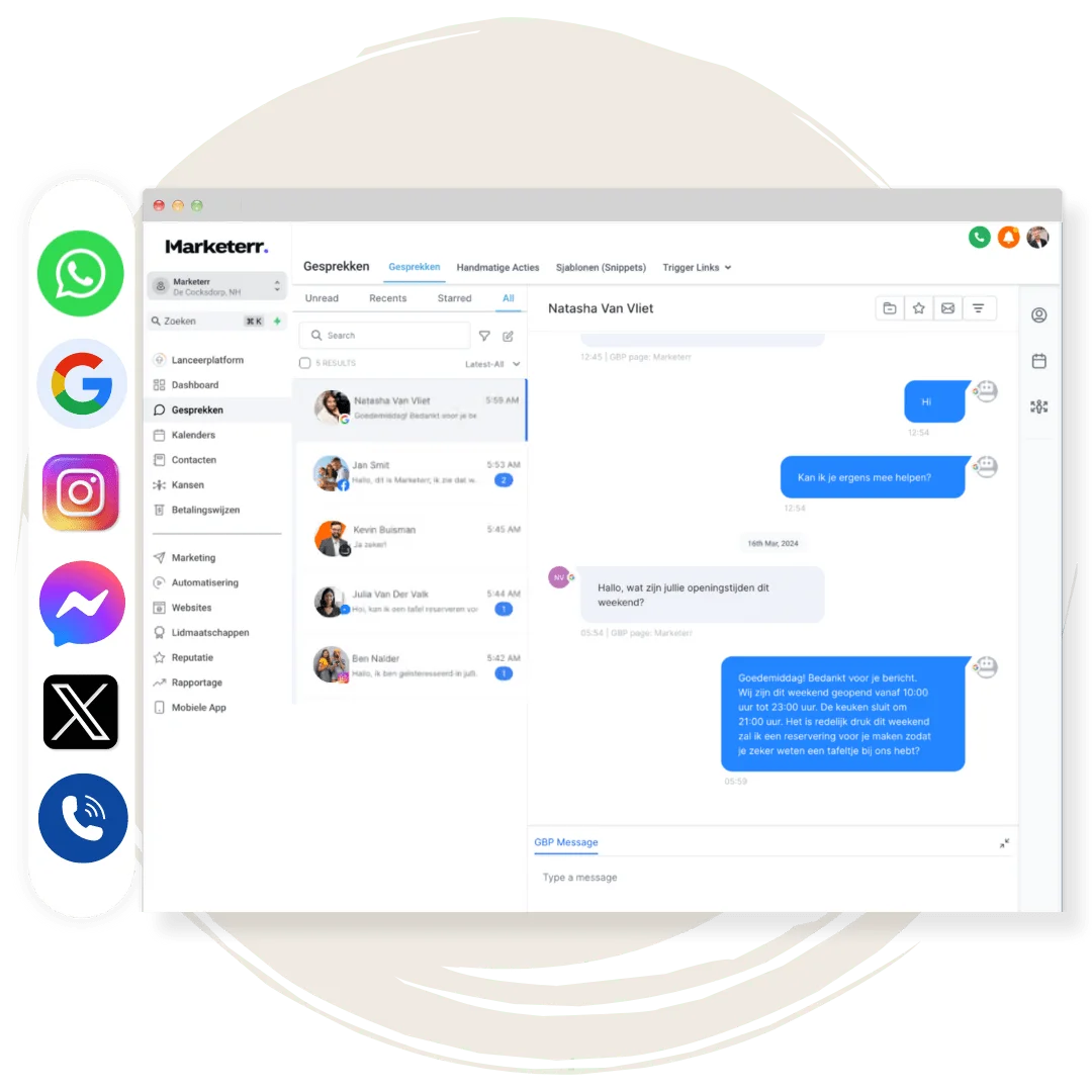 Marketerr AI is verweven met elk onderdeel van het Marketerr platform, van reputatiebeheer tot social media, en omnichannel klantinteracties.
