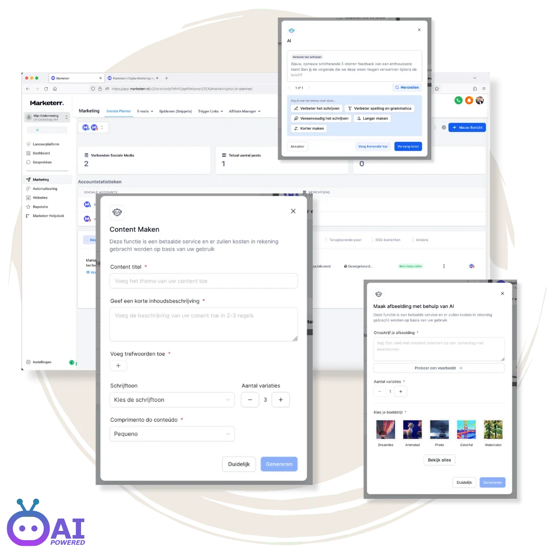 Maak kennis met onze AI-gestuurde social media beheer systeem die jouw berichten een boost geeft zonder dat je er een dagtaak aan hebt.